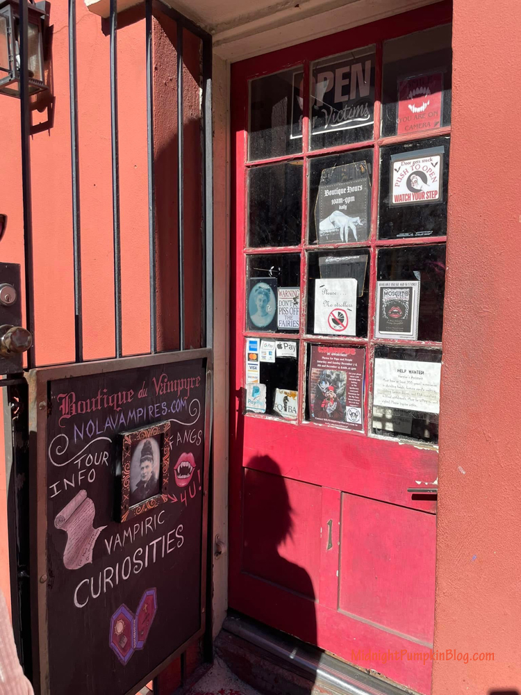 The Boutique du Vampyre is located at 709 1/2 St. Ann Street. It’s a tiny little shop with vampire themed items and curiosities.