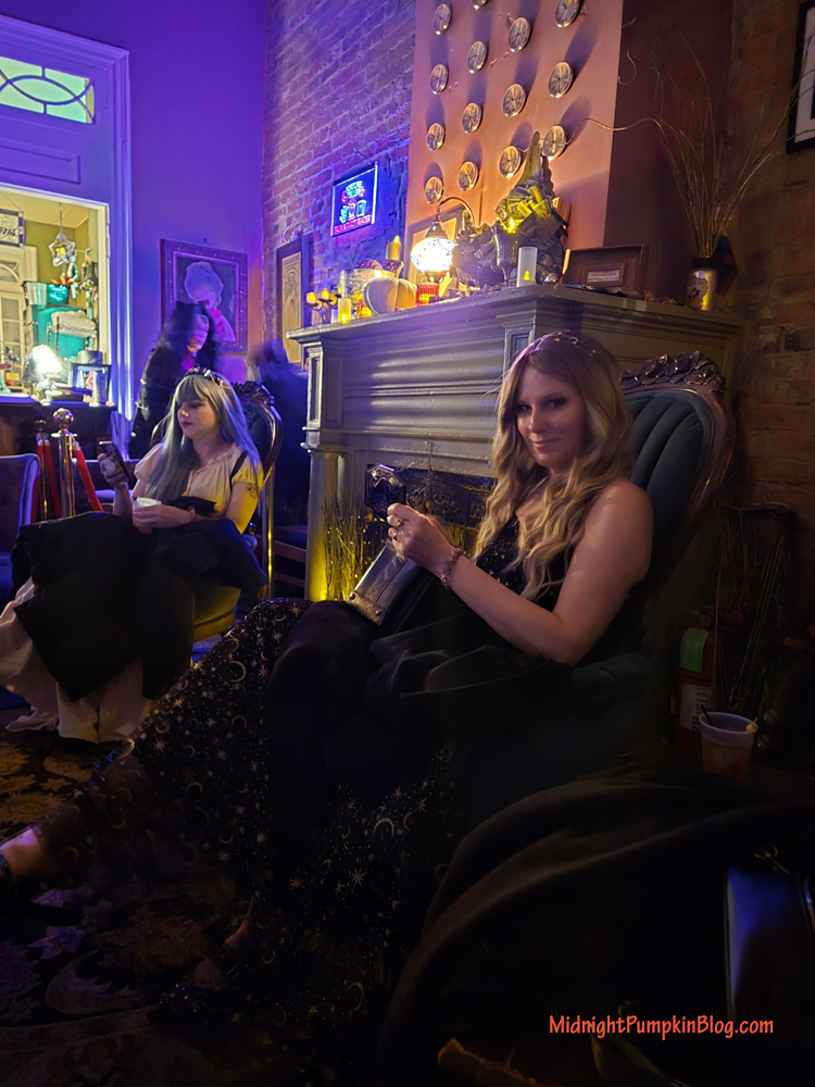 They have a tarot card reader, and we got our cards read while sipping some tasty mixed drinks with fun vampire-themed names.